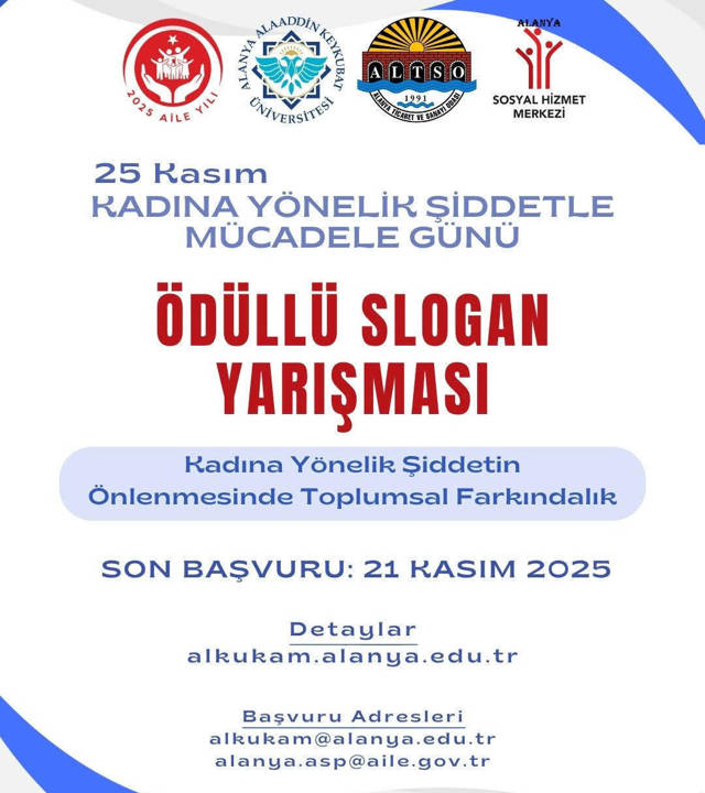 25 KASIM KADINA YÖNELİK ŞİDDETLE MÜCADELE GÜNÜ ÖDÜLLÜ SLOGAN YARIŞMASI