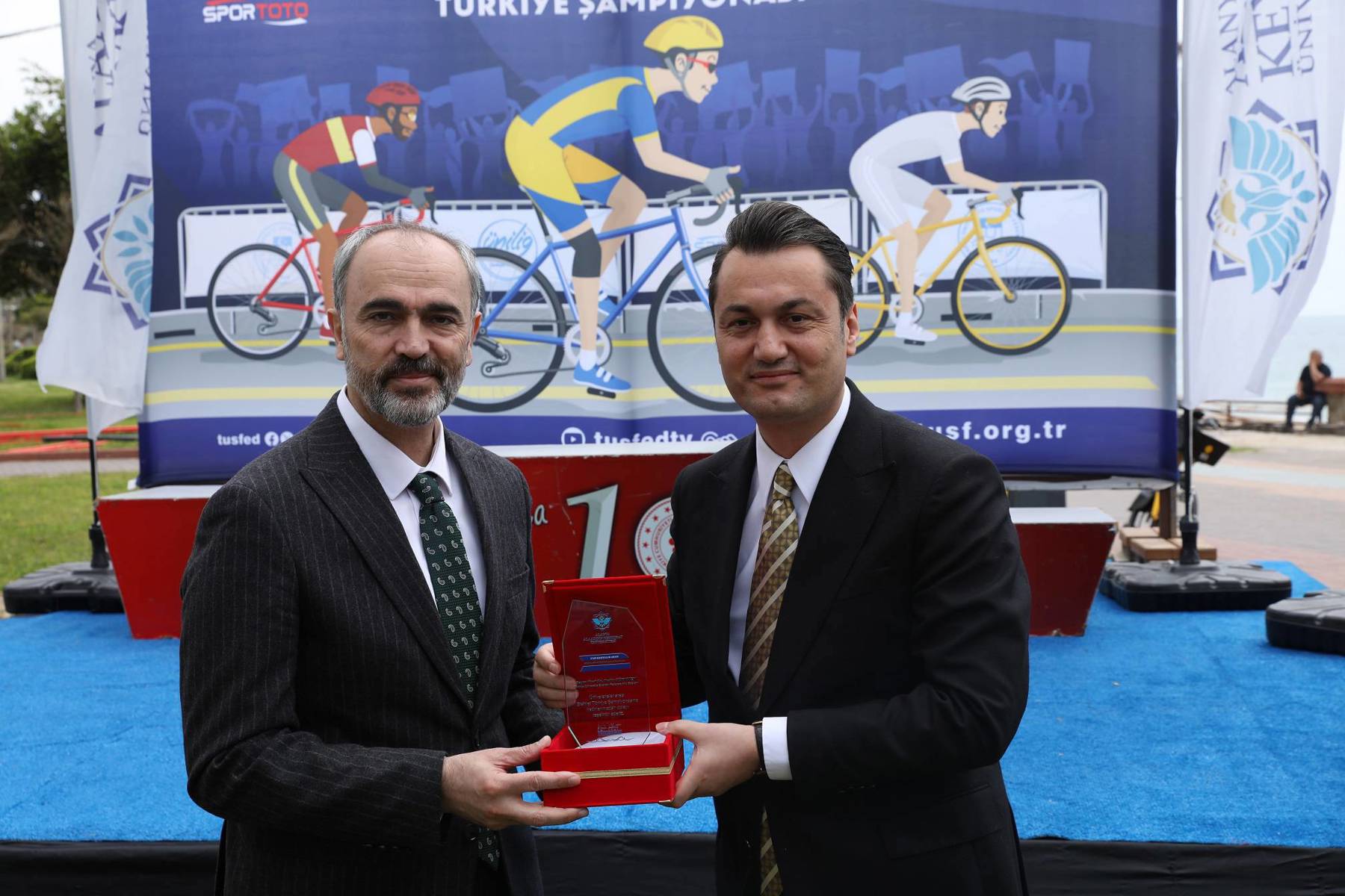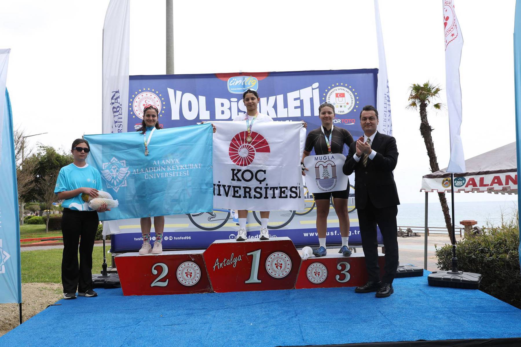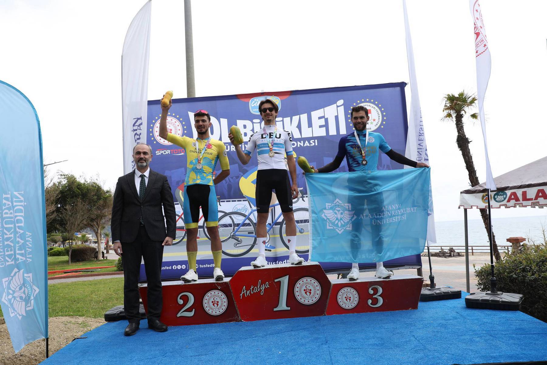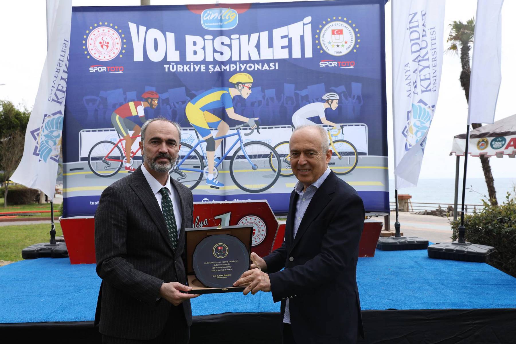 Şampiyonların belli olmasının ardından Federasyon Başkanı Prof. Dr. Mutlu Türkmen yaptığı konuşmada, sporcuları tebrik etti. Başkan Türkmen, şampiyonanın Alanya’da düzenlenmesinden büyük memnuniyet duyduklarını belirterek organizasyona destekleri için Alanya Kaymakamlığına, Alanya Belediyesine, Türkiye Bisiklet Federasyonuna, Türkiye Üniversite Sporları Federasyonuna, İlçe Gençlik ve Spor Müdürlüğüne, ALKÜ Rektörü Prof. Dr. Kenan Ahmet Türkdoğan’a ve kurumlara teşekkür etti. Konuşmanın ardından protokol üyeleri şampiyonlara kupa ve madalyalarını verdiler. Yol Bisikleti Şampiyonası toplu hatıra fotoğrafı ile sona erdi. Şampiyonanın diğer etabı Dağ Bisikleti Yarışları 15 Nisan 2026 Çarşamba günü saat 10.00’da Alanya Kızılalan mevkisinde yapılacak.