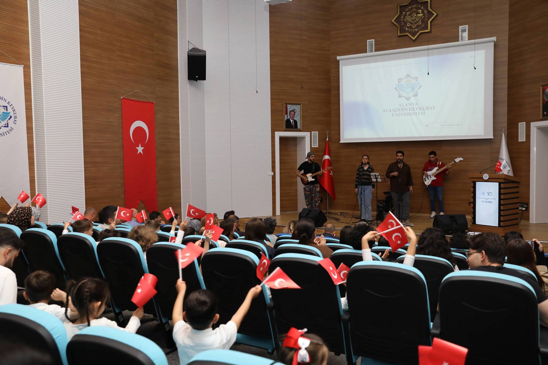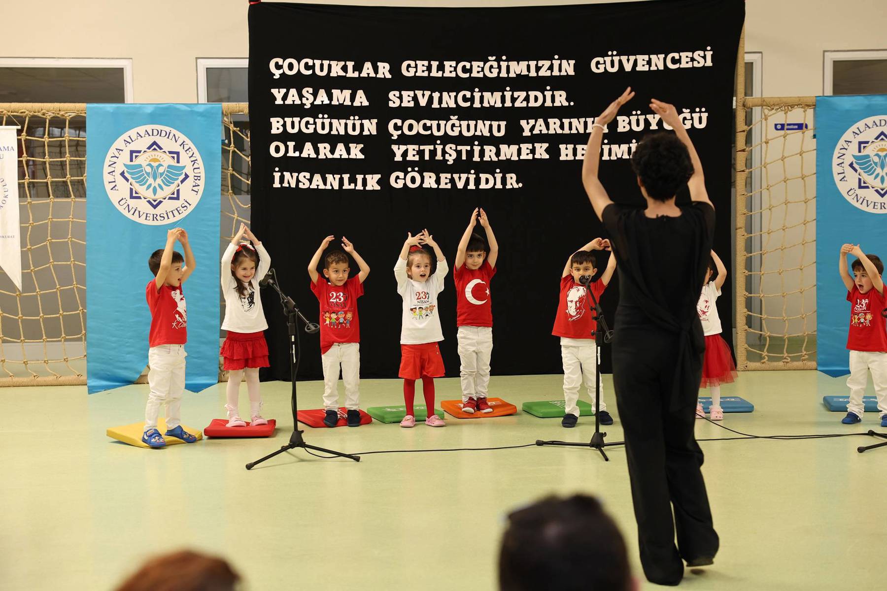 Alanya Alaaddin Keykubat Üniversitesinde (ALKÜ), 23 Nisan Ulusal Egemenlik ve Çocuk Bayramı, çeşitli okullardan çocukların ziyaretleri, makam koltuklarının devredilmesi ve ALKÜ Uygulama Anaokulunun yaptığı birbirinden güzel etkinliklerle coşkuyla kutlandı