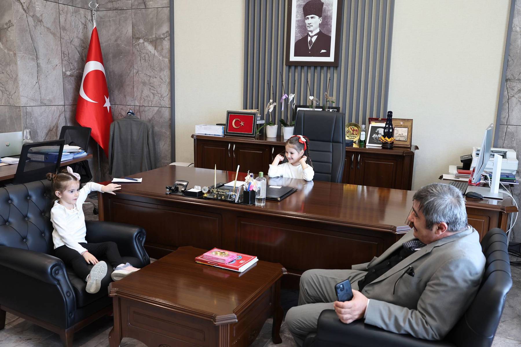 Alanya Alaaddin Keykubat Üniversitesinde (ALKÜ) 23 Nisan Ulusal Egemenlik ve Çocuk Bayramı birbirinden renkli etkinliklerle kutlandı. İlk etkinlik, ALKÜ Uygulama Anaokulu Müdürü Dr. Öğr. Üyesi Fatih Şeker, öncülüğündeki öğrenciler Rektör Yardımcıları Prof. Dr. Mehmet Kılıç ve Prof. Dr. Atıf Bayramoğlu’nu ziyaret ettiler. Ziyarette öğrenciler Rektör Yardımcılarıyla sohbet ettikten sonra makam koltuğuna oturdular. Öğrenciler burada isteklerini belirtirken keyifli anlar yaşandı. Rektör Yardımcıları Prof. Dr. Kılıç ve Prof. Dr. Bayramoğlu, öğrencilere hayatlarında başarılar dileyerek yarınlarımızın teminatı olan tüm çocukların23 Nisan Ulusal Egemenlik ve Çocuk Bayramı’nı kutladı. Ziyarette, ALKÜ Uygulama Anaokulu İktisadi İşletme Müdürü Abdurrahman Coşkun ile ALKÜ Uygulama Anaokulu Uzman Öğretici Cansu Uygun da yer aldı. Ziyaretler toplu hatıra fotoğrafı çekimiyle sona erdi. Öte yandan Kestel Alantur Ayhan Şahenk İlkokulu 3-A sınıfı öğrencisi Elif İkra Er, Okul Müdürü Veli Uğur ve Sınıf Öğretmeni İlke Tamer ile birlikte Rektör Yardımcısı Prof. Dr. Işık Bayraktarı ziyaret ettiler. Ziyarette makam koltuğunu devralan öğrenci Elif İkra, kütüphanenin daha çok büyütülmesini talimatını verdi. Rektör Yardımcısı Prof. Dr. Bayraktar, ziyaretten memnuniyet duyduğunu belirterek minik Elif’e ve arkadaşlarına başarılar diledi. Keyifli geçen ziyaretin ardından minik Elif ve öğretmenleri, ALKÜ Prof. Dr. Fuat Sezgin Merkez Kütüphanesi ziyaret ederek bilgi aldılar.