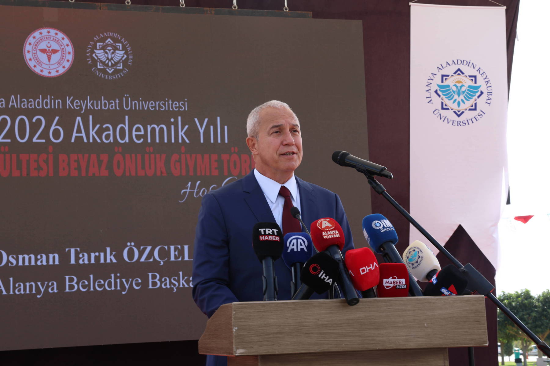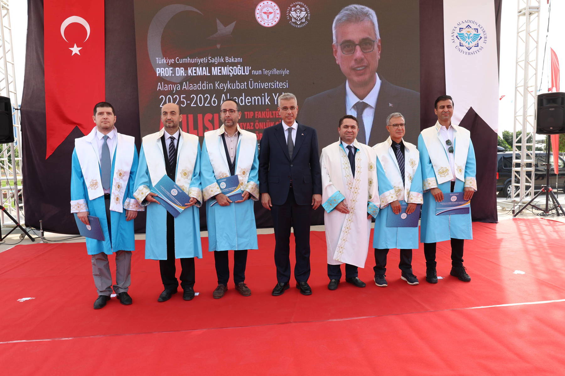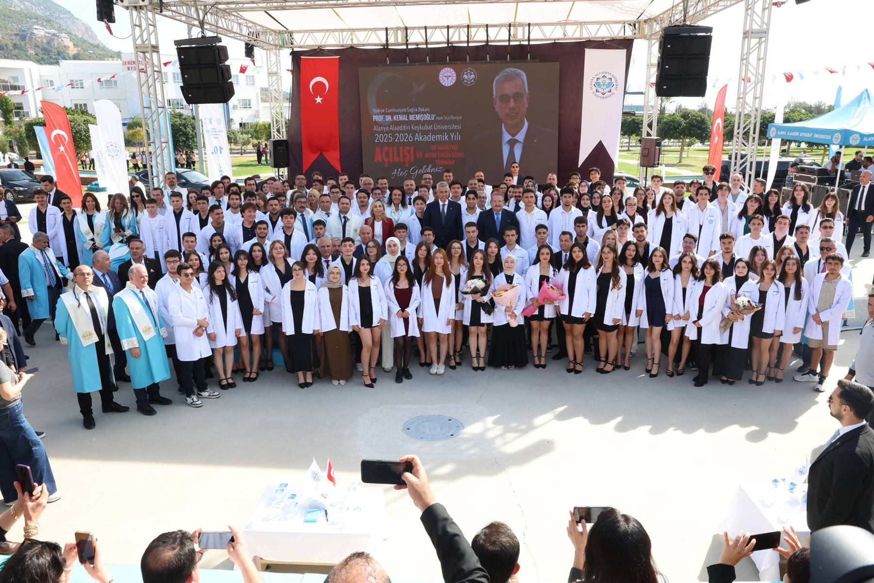 Alanya Alaaddin Keykubat Üniversitesi (ALKÜ) 2025-2026 Akademik Yılı Açılış Töreni, İlk Ders ve Tıp Fakültesi Beyaz Önlük Giyme Töreni, Sağlık Bakanı Prof. Dr. Kemal Memişoğlu’nun katılımıyla gerçekleştirildi. Bakan Memişoğlu, tıp fakültesi öğrencilerine ilk dersi verdi.