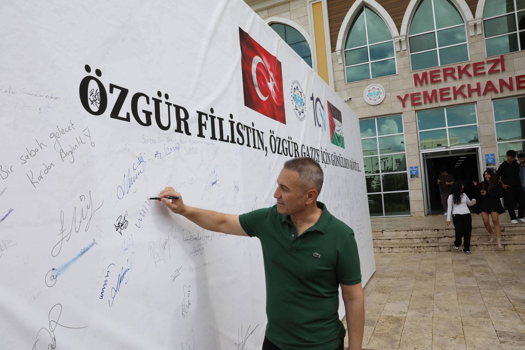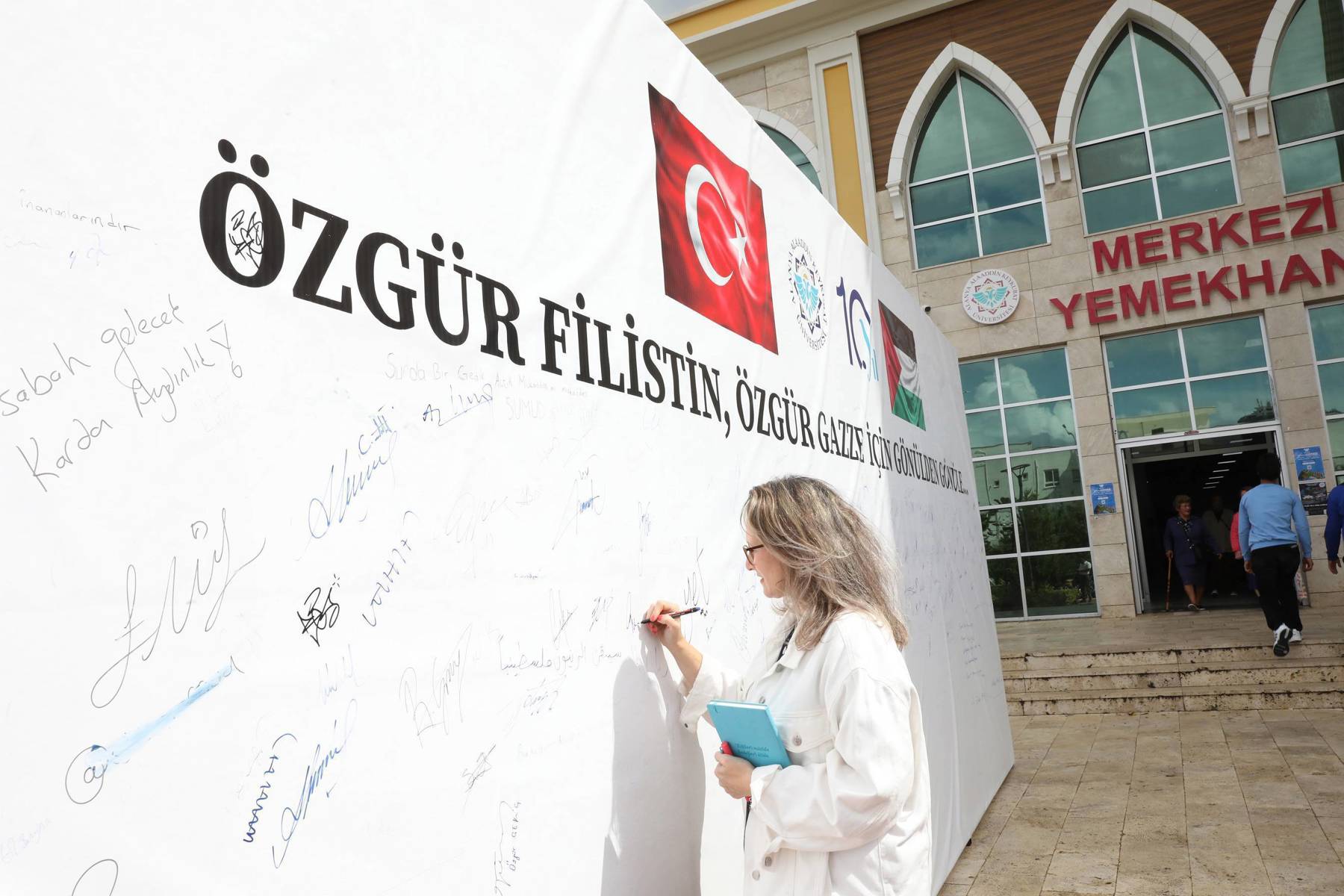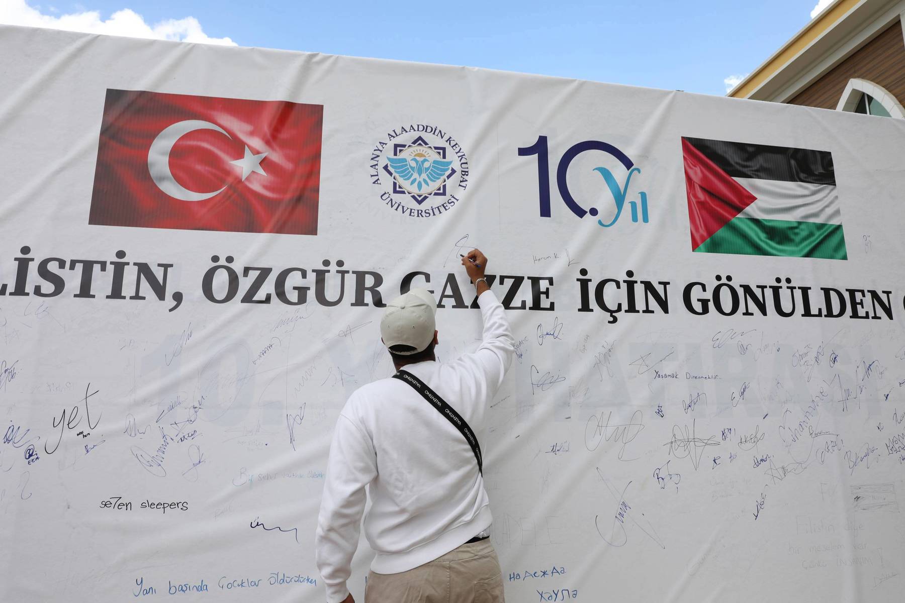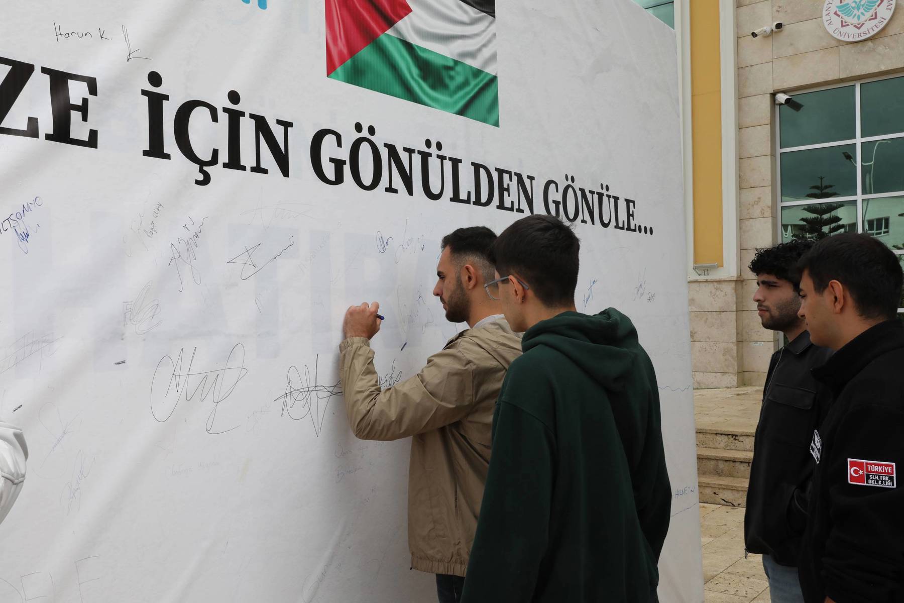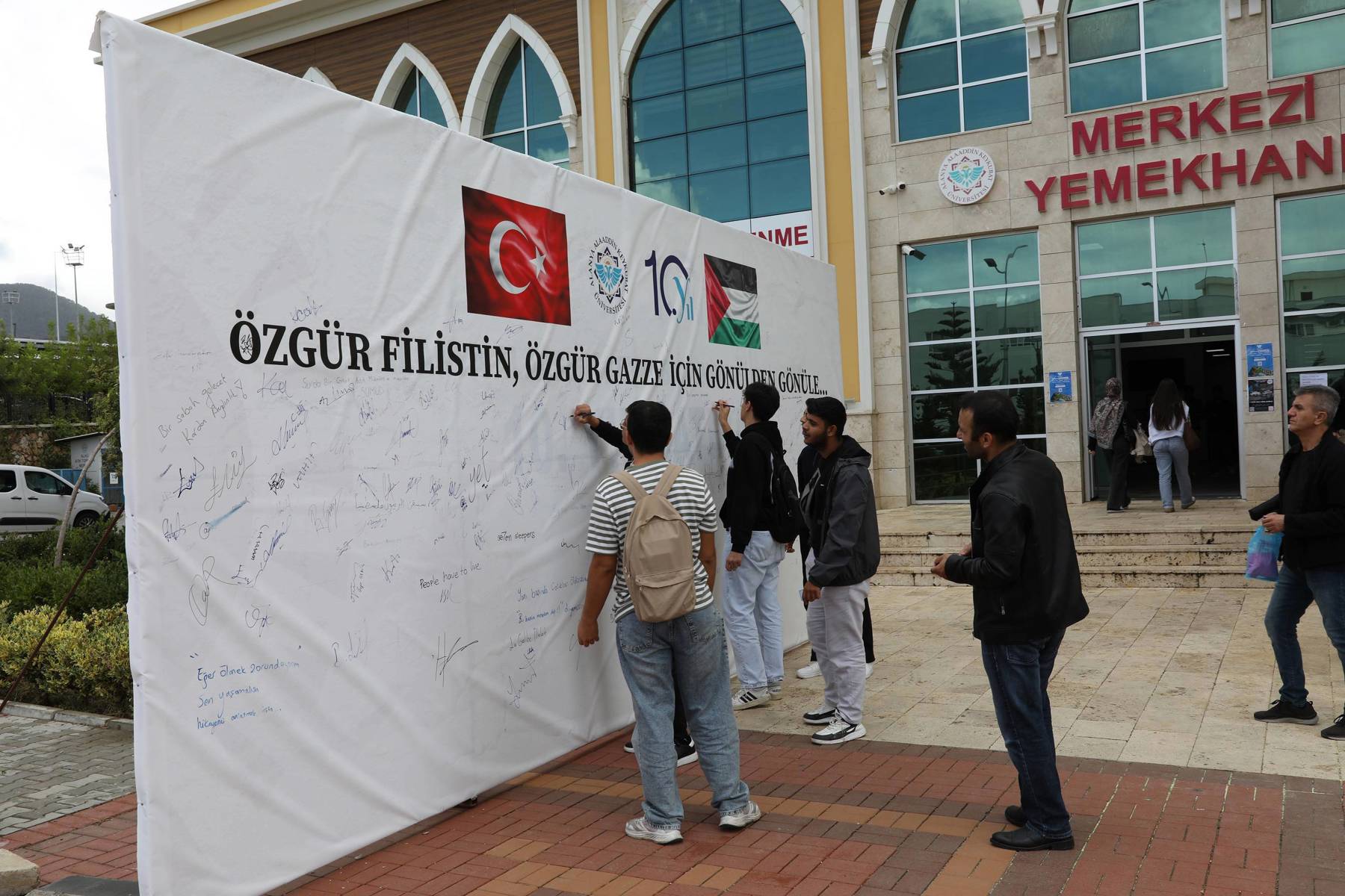 Alanya Alaaddin Keykubat Üniversitesi (ALKÜ) Kestel Yerleşkesinde “Özgür Filistin, Özgür Gazze için Gönülden Gönüle…” imza platformuna akademisyenler, idari personel ve öğrenciler tarafından destek devam ediyor.