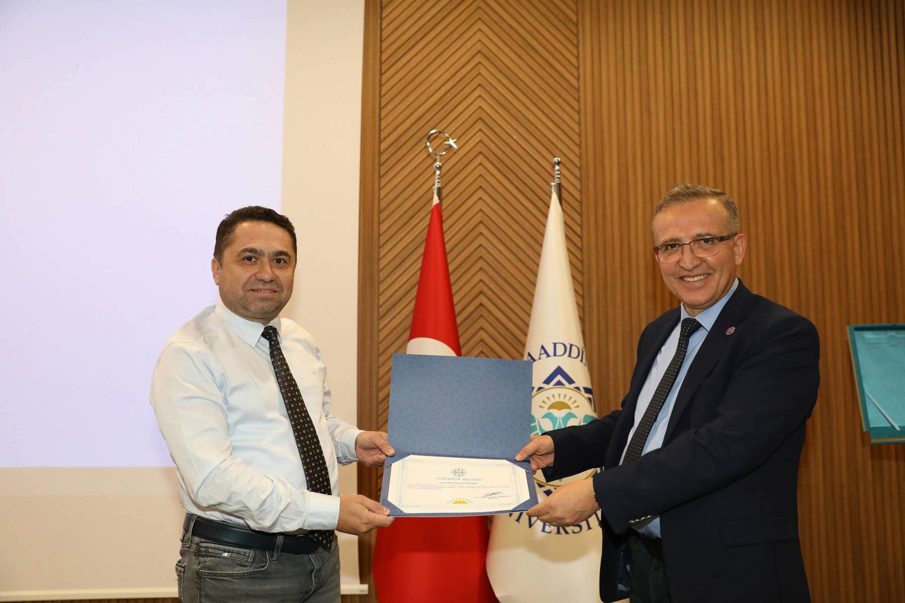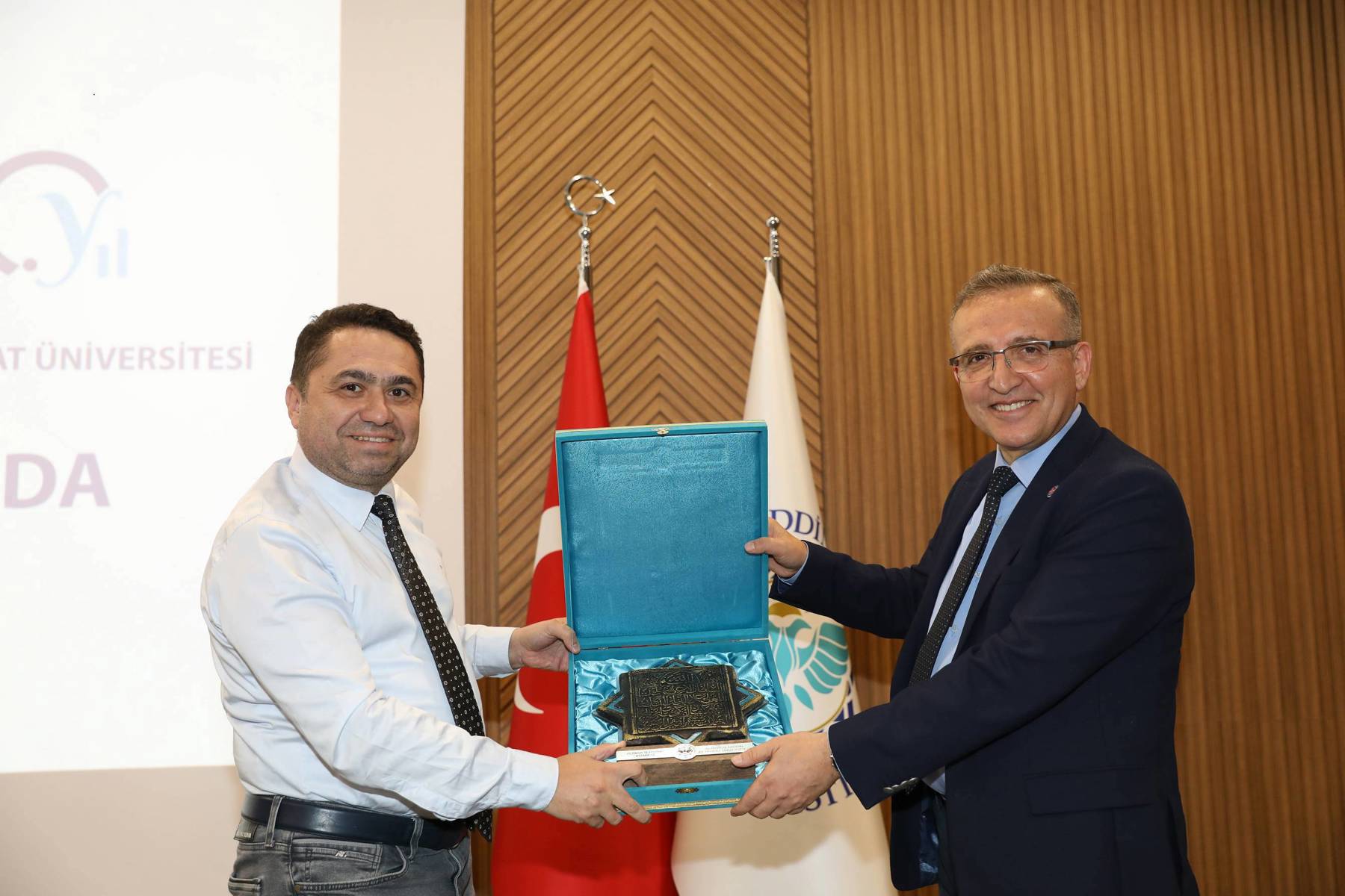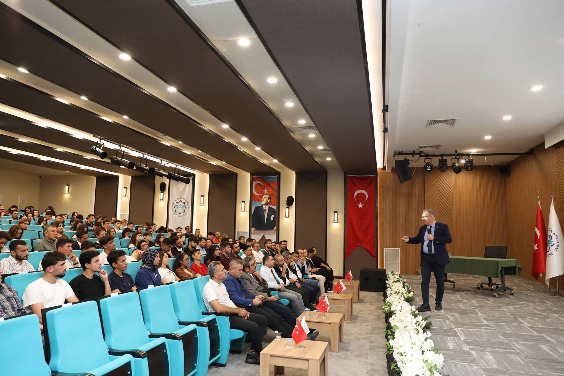 Konferansta konuşan Dr. Eray Güçlüer, Türk savunma sanayinin Osmanlı döneminden günümüze uzanan gelişim sürecini tarihsel örneklerle aktardı. Cumhuriyetin ilk yıllarındaki sanayileşme hamlelerinden, 2000’li yıllarda ivme kazanan yerli ve milli savunma teknolojileri projelerine kadar uzanan kapsamlı bir perspektif sunan Güçlüer, özellikle son yıllarda teknoloji üretiminde dışa bağımlılığın azalmasının, Türkiye’nin dış politika manevra alanını genişlettiğini belirtti. Sahadan örneklerle Türk dış politikasındaki dönüşümü de açıklayan Güçlüer, SİHA ve TİHA gibi sistemlerin sahadaki başarısının yalnızca askeri bir kazanım değil, aynı zamanda diplomatik itibarın güçlenmesi anlamına geldiğini ifade etti. Güçlüer, Türkiye’nin savunma sanayinde edindiği tecrübelerin, bölgesel krizlerde daha özerk ve caydırıcı bir aktör haline gelmesini sağladığını vurguladı. Etkinlik, katılımcılardan gelen soruların yanıtlanmasının ardından Rektör Türkdoğan tarafından Güçlüer’e belge takdimi ve teşekkürlerin sunulmasıyla sona erdi.