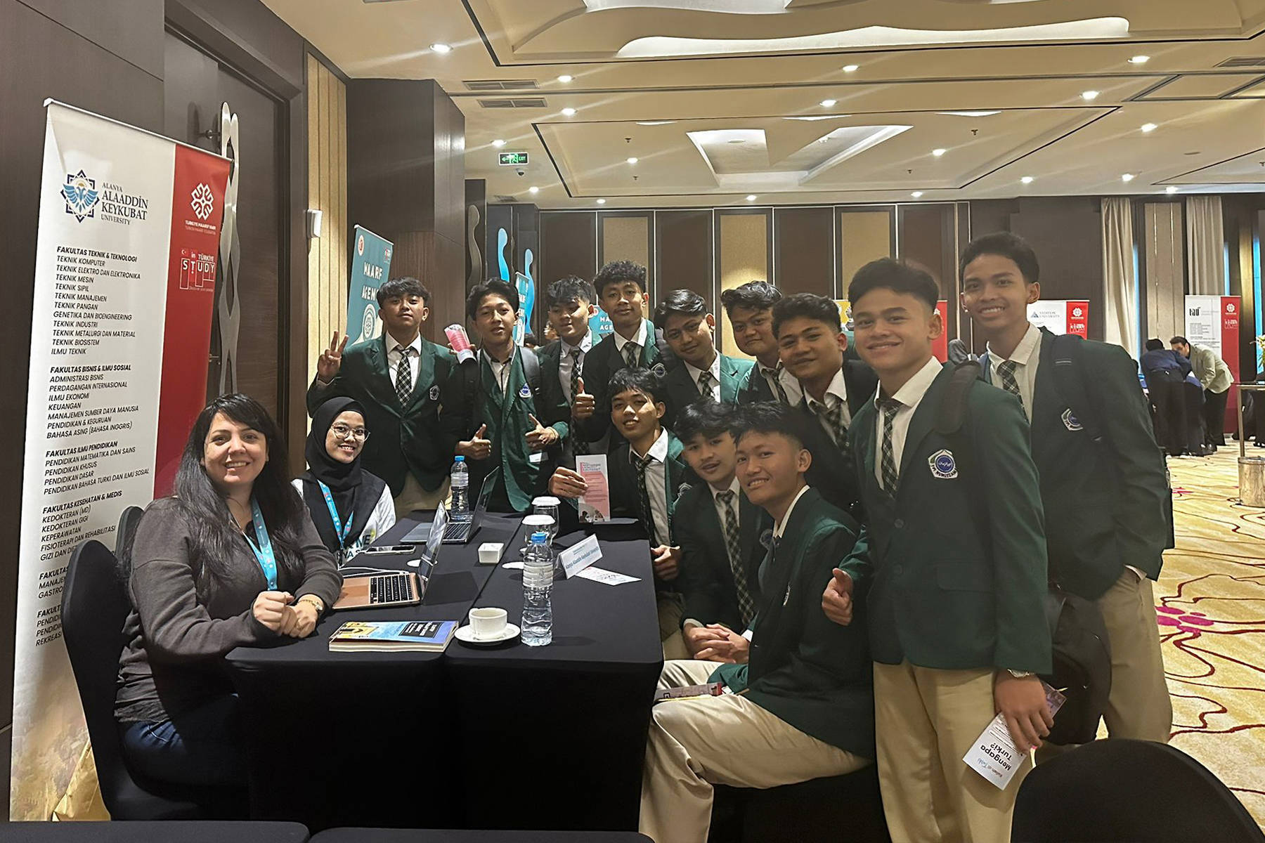Alanya Alaaddin Keykubat Üniversitesi (ALKÜ) bilimsel ve akademik projelerinin yanında dünyadaki birçok üniversite ile de iş birlikleri yaparak öğrencilerinin geleceğine önemli katkılar sunmaya devam ediyor. Bu kapsamda ALKÜ Rektörü Prof. Dr. Kenan Ahmet Türkdoğan ve ALKÜ Dış İlişkiler Koordinatörlüğü Genel Koordinatör Yardımcısı Öğr. Gör. Dr. Diren Doğan, Türkiye Maarif Ajansı tarafından 24–26 Ocak 2026 tarihleri arasında Endonezya’da düzenlenen “Türk Üniversiteleri Eğitim Fuarı”na katıldı. Türkiye Cumhuriyeti Cakarta Büyükelçisi Prof. Dr. Talip Küçükcan’ın katılımıyla gerçekleştirilen açılış töreninin ardından fuar, Cakarta ve Bandung şehirlerinde gerçekleşti. Türkiye’den 26 üniversitenin katıldığı fuar kapsamında Endonezyalı  öğrenciler, ALKÜ standına yoğun ilgi gösterdi. ALKÜ’de öğrenim görmek isteyen öğrencilerle ve lise yöneticileri ALKÜ standında Öğr. Gör. Dr. Diren Doğan’dan detaylı bilgileri aldılar. Fuarda Cakarta’daki lise müdürleri ile yapılan toplantıda Rektör Türkdoğan, ALKÜ ve eğitim sistemi hakkında merak edilenleri cevapladı.