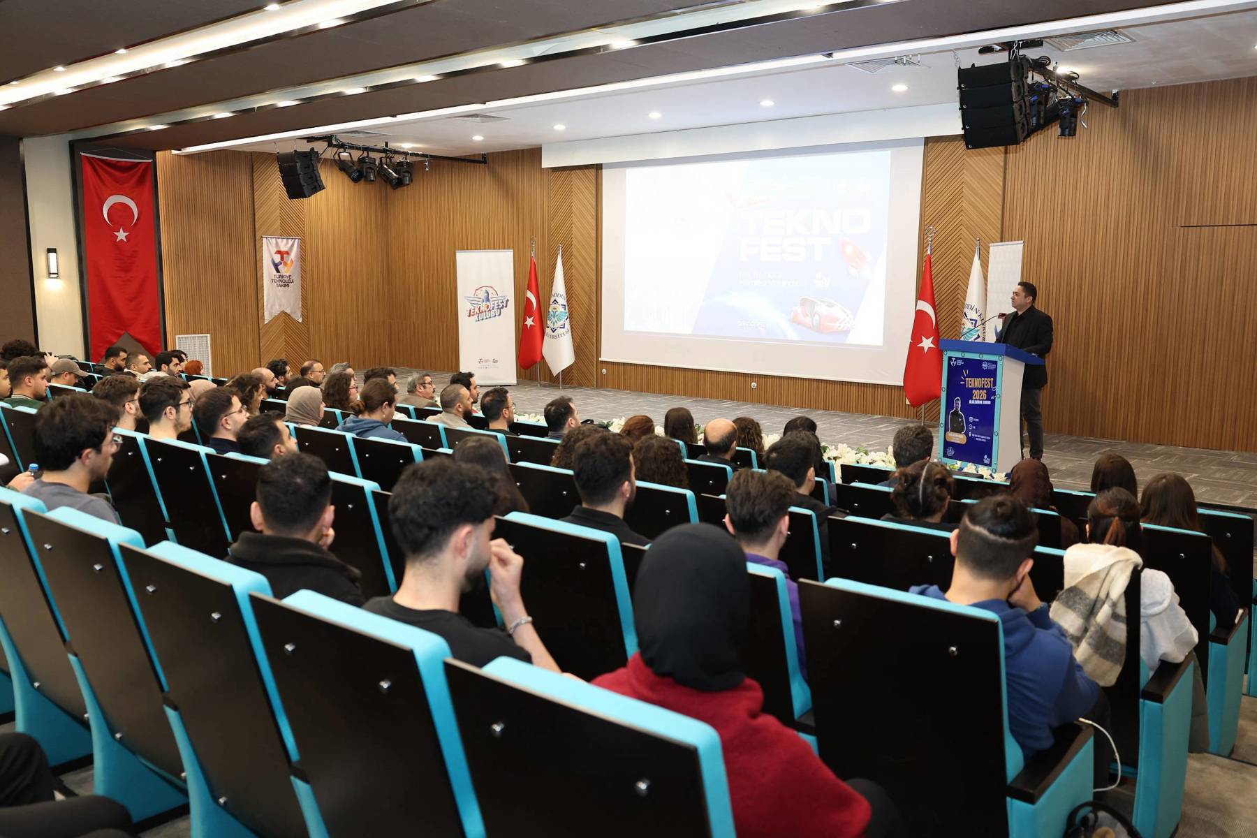 Alanya Alaaddin Keykubat Üniversitesinde (ALKÜ) Teknofest heyecanı her geçen gün artıyor. Dünyanın en büyük havacılık, uzay ve teknoloji festivali TEKNOFEST, 2026 yılında binlerce yıllık tarihi ve köklü medeniyet mirasıyla öne çıkan Şanlıurfa’da düzenlenecek. ALKÜ’de de TEKNOFEST 2026’ya katılmak için hazırlıklar tüm hızıyla sürüyor. Bu kapsamda ALKÜ TEKNOFEST Öğrenci Topluluğu tarafından T3 Vakfı Antalya Deneyap Sorumlusu Halil İbrahim Akboğa’nın anlatıcı olduğu “TEKNOFEST 2026 Bilgilendirme Sunumu” yapıldı. ALKÜ Alev Alatlı Konferans Salonu’nda yapılan programa, ALKÜ Rektörü Prof. Dr. Kenan Ahmet Türkdoğan, Rektör Yardımcısı Prof. Dr. Mehmet Kılıç, Dekanlar, MYO müdürleri, akademisyenler ve öğrenciler katıldı.