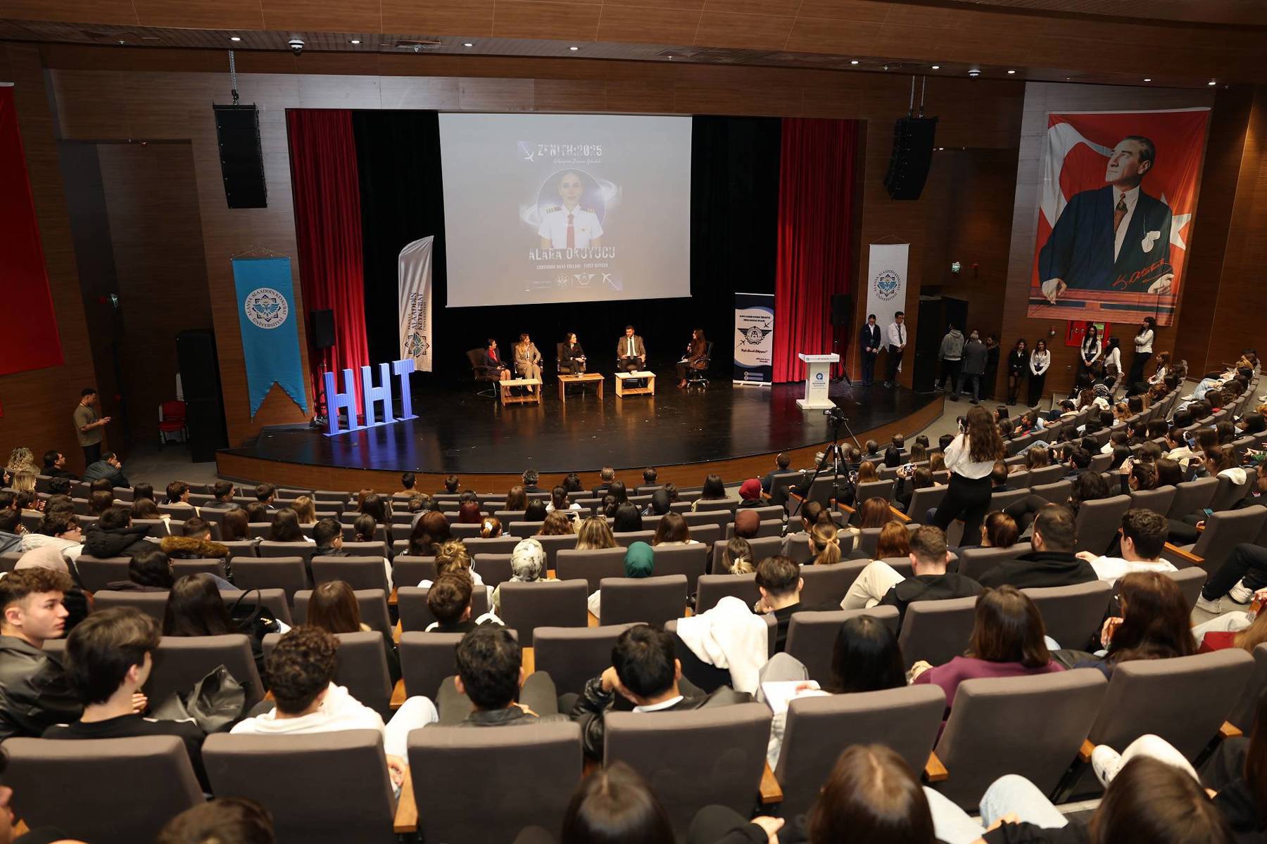 Alanya Alaaddin Keykubat Üniversitesi (ALKÜ) Gazipaşa Yerleşkesinde düzenlenen “Zenith: 2025 Gökyüzünün Zirvesine Yolculuk” programında SunExpress, Corendon Airlines ve Uluslararası ARFF temsilcileri öğrencilerle buluşarak tecrübelerini aktardılar.