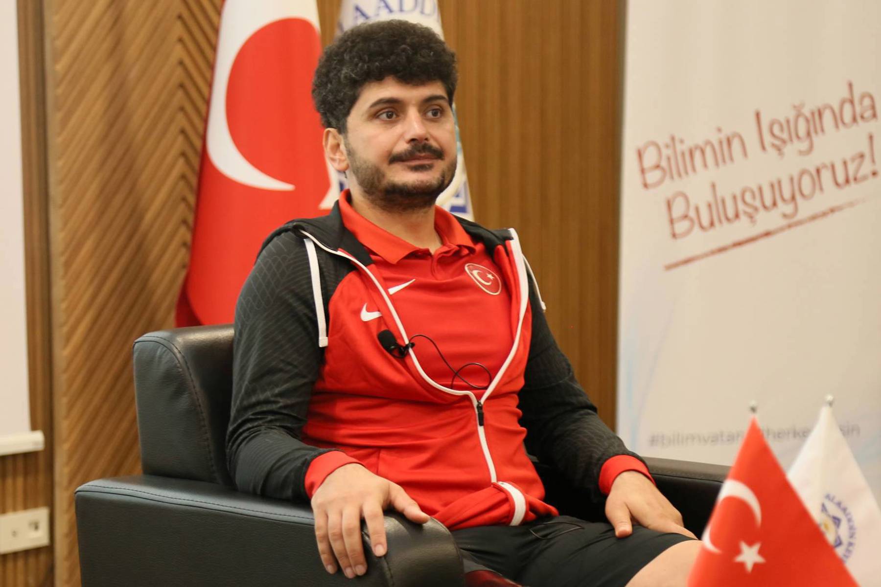 Alanya Alaaddin Keykubat Üniversitesi (ALKÜ) Bilim İletişimi Ofisi öncülüğünde Aytemiz’in katkılarıyla düzenlenen “Aytemiz Sahne – Merak Ettiklerin Buradan Geçer” program serisinin üçüncüsü yapıldı. Serinin üçüncü bölümünde Türkiye'de ve dünyada “Ampute Messi” olarak tanınan milli sporcu Barış Telli ve Antrenörü Prof. Dr. Hacı Ahmet Pekel, “Her Şeye Rağmen” isimli düzenlenen konferansta Alanyalılarla buluştu. Öğrencilerin ve vatandaşların yoğun katılım gösterdiği programda Telli, çocukluğunda geçirdiği trafik kazasından dünya şampiyonluklarına uzanan, “imkânsız” kelimesini hayatından sildiği ilham verici yolculuğunu paylaştı. ALKÜ Alev Alatlı Konferans Salonu’nda yapılan programa Rektör Yardımcısı Prof. Dr. Işık Bayraktar, Alanya Belediyesi Engelsiz Yaşam Merkezi Müdürü Münir Altıoğlu, Alanya Mevlüt Çavuşoğlu Spor Lisesi Müdürü Taner Yıldırım, akademisyenler, öğrenciler ve vatandaşlar katıldı.