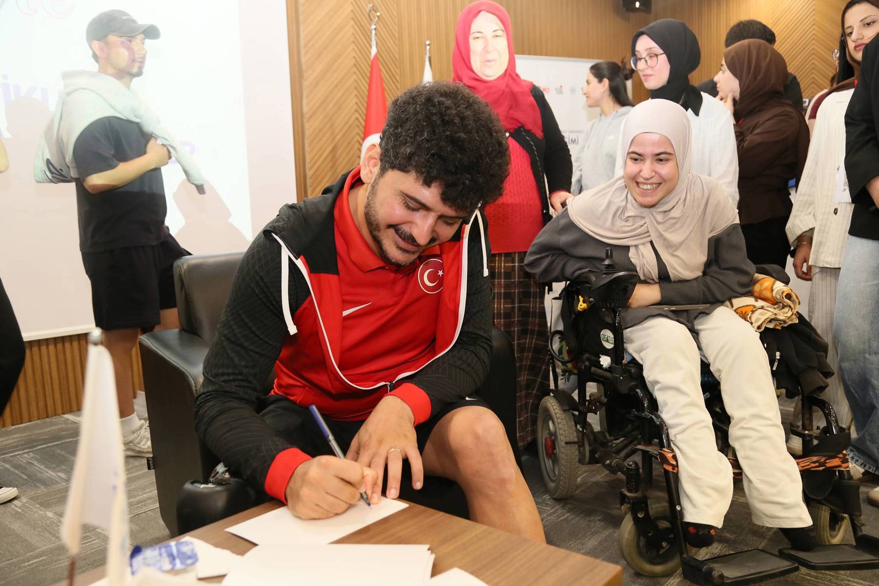 Etkinliğe Ampute A Millî Takım futbolcusu Barış Telli ile katılan antrenörü ve mentoru Prof. Dr. Hacı Ahmet Pekel, başarılı sporcunun disiplini ve enerjisi hakkında çarpıcı anekdotlar paylaştı. Pekel, Gazi Üniversitesi yıllarında tanıştığı Barış Telli için, “Bizim en büyük sorunumuz Barış’ı durdurmaya çalışmaktı, çünkü o hiç durmuyordu” ifadelerini kullanarak sporcunun bitmek bilmeyen enerjisine ve başarı azmine vurgu yaptı. Telli’nin atletizm branşına yönelmesiyle birlikte, 100 metre, yüksek atlama ve uzun atlama gibi alanlarda Türkiye rekorları ve altın madalya başarılarının hikayesini anılarıyla birlikte salonda bulunanlara aktardı. Prof. Dr. Hacı Ahmet Pekel salonda bulunanlara sporun bireylerin hayatındaki dönüştürücü etkisine dikkat çekerek, disiplinli çalışma ve inancın başarıdaki rolünü anlattı.